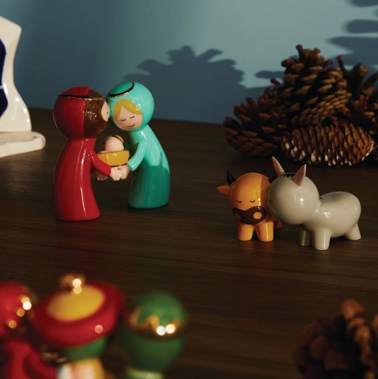 De Alessi kerst beeldjes Jozef en Maria met Jezus en de ezel met de os voor de kerststal. Deze kerstfiguren zijn... Lees meer