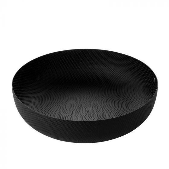 Alessi ronde schaal / basket met reliëf decoratie van mat zwart staal ontworpen door Jasper Morrison. De voortreffelijkheid van de... Lees meer