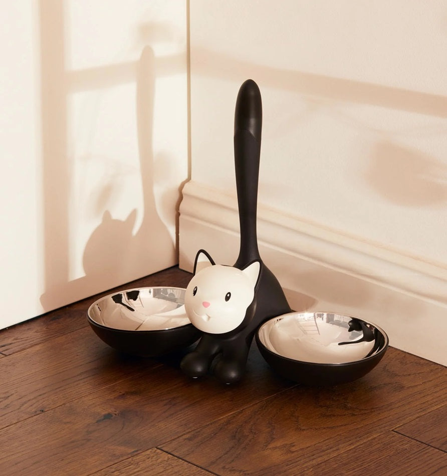 Alessi Tigrito kattenschaaltjes zijn van roestvrij staal en zwart kunststof gemaakt. De 2 schaaltjes hebben een inhoud van 550 ml... Lees meer