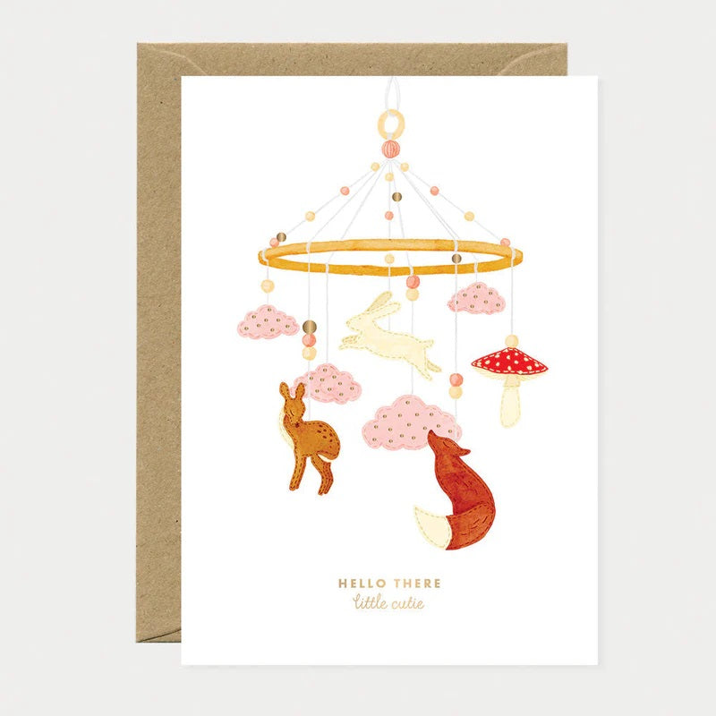 Een teder welkom voor de kleintjes. De Hello There Cutie- wenskaart van All the Ways to Say heeft een schattige mobiel met bosdieren, zachte wolken... Lees meer