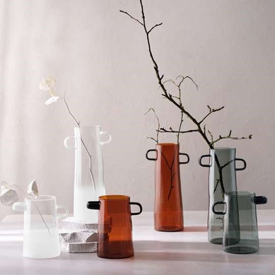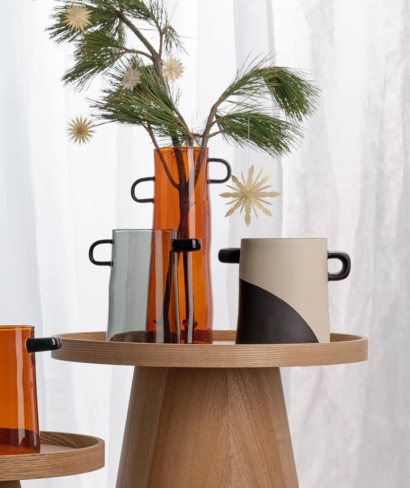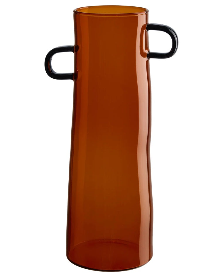 ASA Selection Rayu glazen vaas in bruin glas met zwarte handvaten. Rayu Glass vazen zijn kunstobjecten voor individualisten die kwaliteit... Lees meer