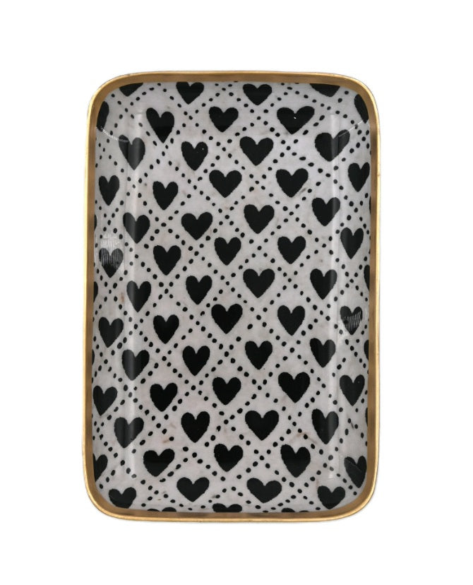 Boncoeurs Coeurs harten aluminium tray small. Deze fraaie tray past in vele interieurs en heeft de hand afgewerkte gouden rand.... Lees meer