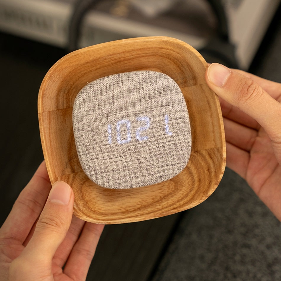 De Lumos wekker / klok is verkrijgbaar in twee verfijnde modellen – ovaal en vierkant – en is verkrijgbaar in de afwerkingen warm walnoten of wit essen hout . Het zachte stoffen display combineert naadloos met het massief houten frame, wat zorgt voor een moderne maar organische uitstraling die in elke ruimte past.