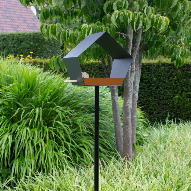 Heeej De Big Diamond is een modern vogelvoederhuisje / birdfeeder van metaal op zwarte paal. De naam verraadt al waarop... Lees meer