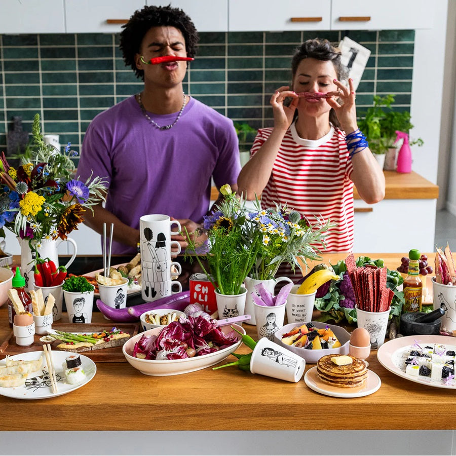 Helen B mok / beker Mine zwarte illustratie tekening gemaakt van wit porselein. De Helen B mok heeft een zwarte... Lees meer