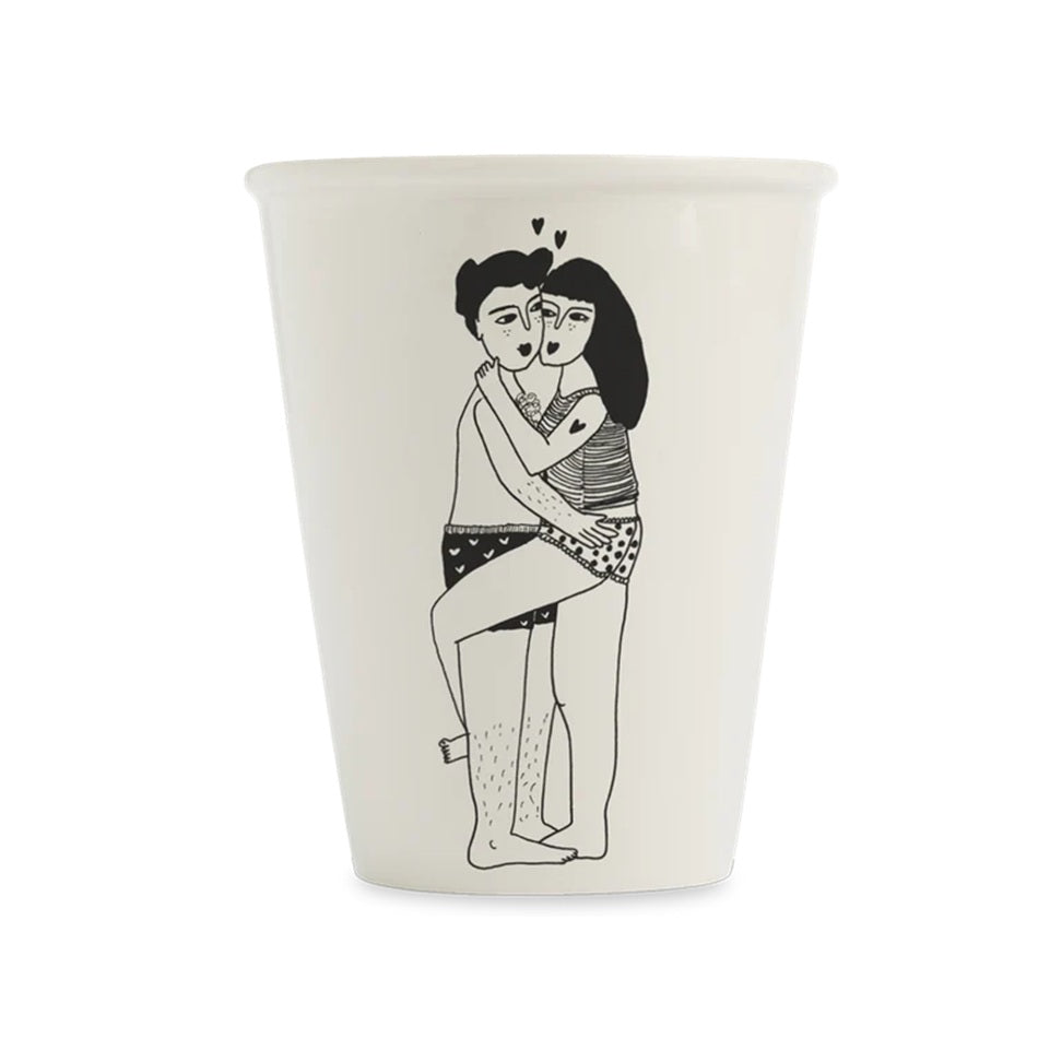 Helen B mok / beker Morning Love zwarte illustratie tekening gemaakt van wit porselein. De Helen B mok heeft een... Lees meer