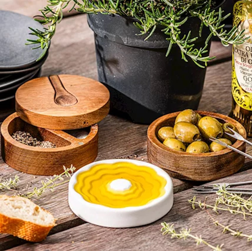 Style de Vie Olijfolieschaaltje met boter- en peper/zoutbakjes