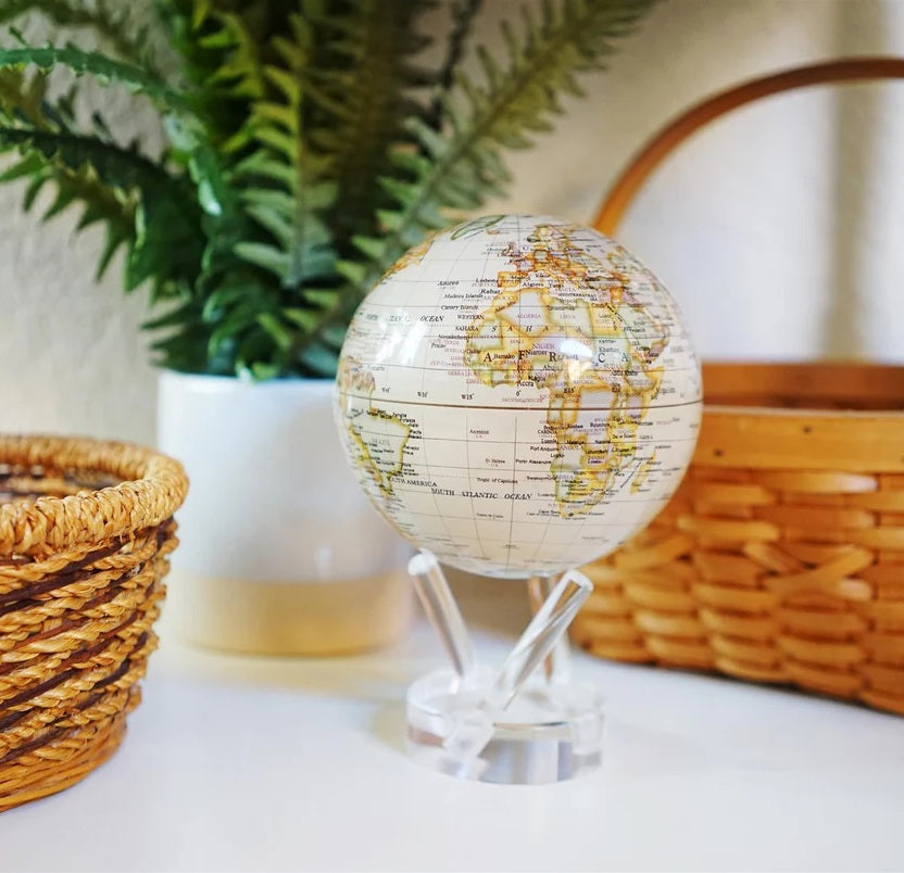 Mova Globes wereldbol antique beige high gloss 11.5 cm