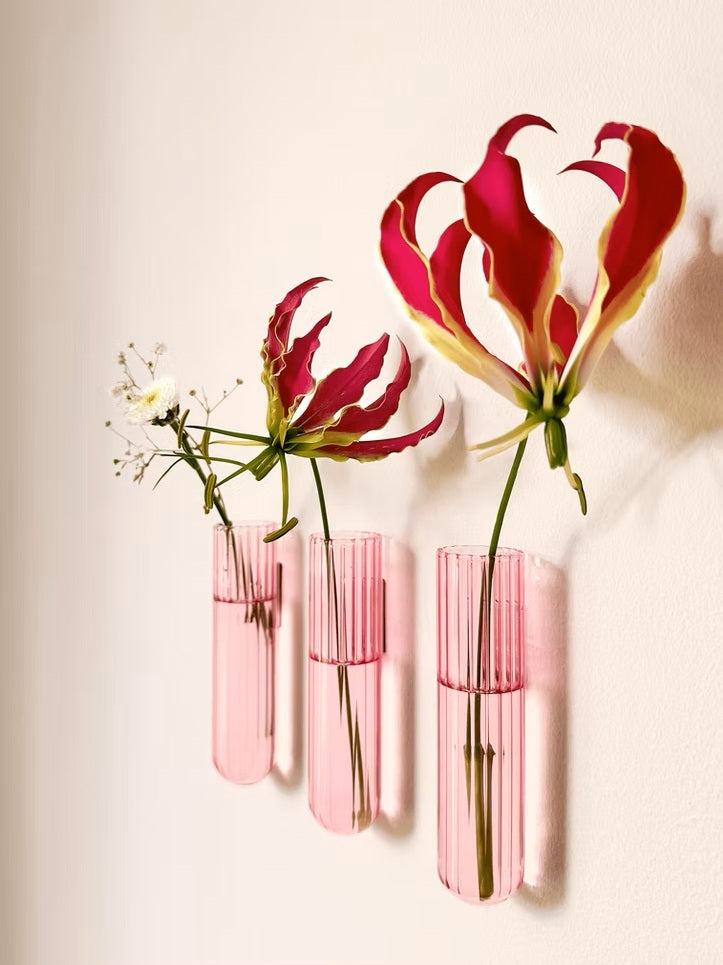 Muurbloempjes - magneet muurvaasje XL roze glas 3 ST