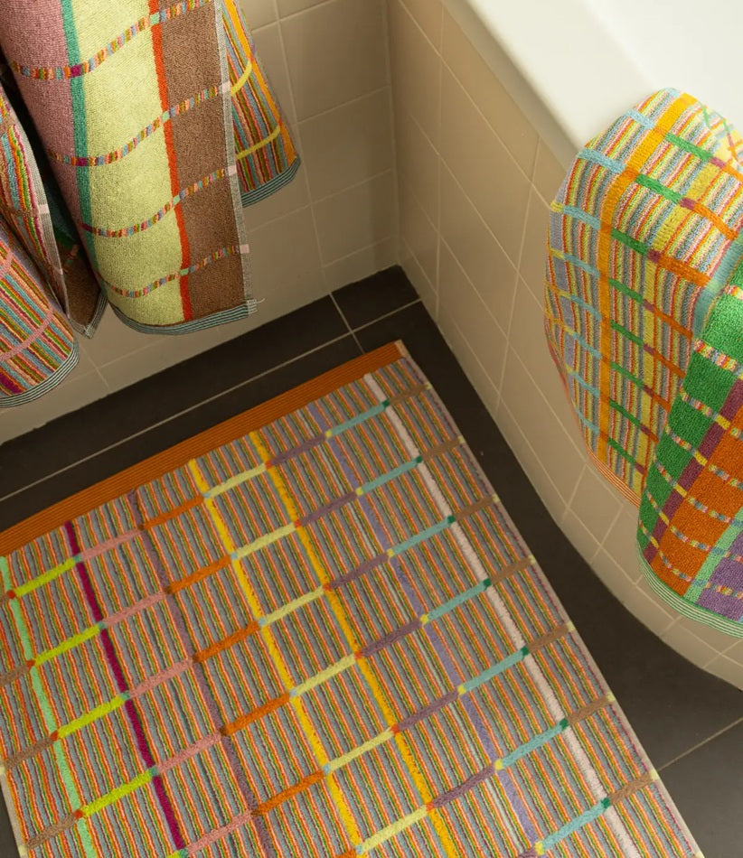Odds & Ends badtextiel - badmat Criss Cross. Kleurrijk huishoudtextiel gemaakt van restmateriaal uit de industrie! Fabrieken verven garens voor het... Lees meer
