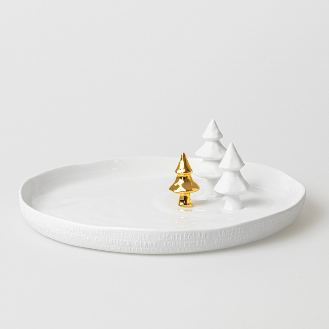 Räder gedecoreerde schaal van wit porselein met dennenbomen. Mooi item voor de najaarstafel of kersttafel. De Räder schaal is niet... Lees meer