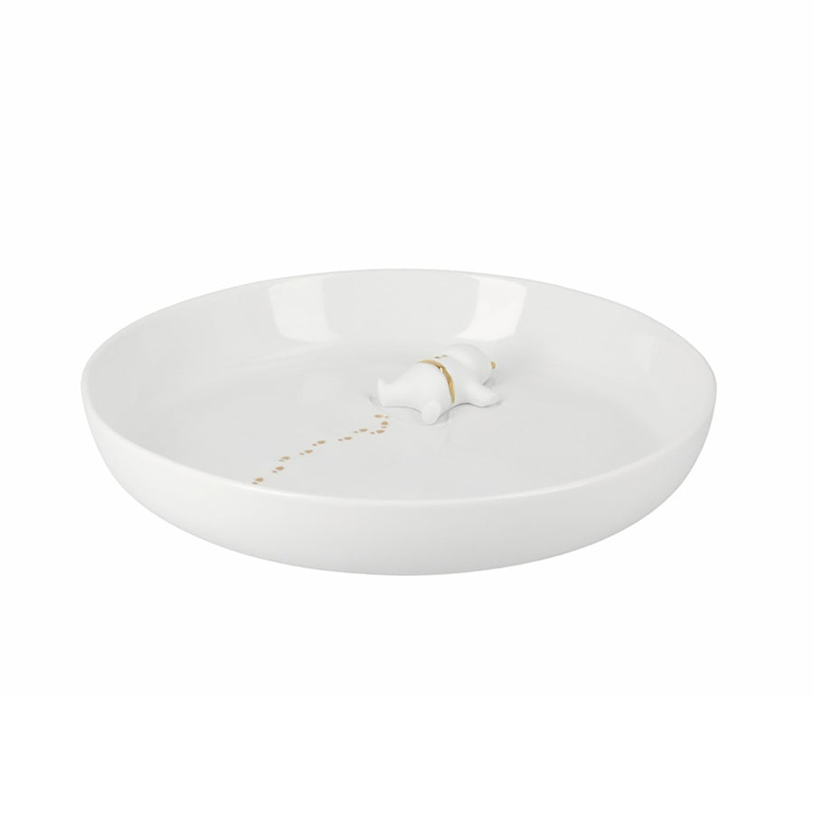 Räder geglazuurd porseleinen schaaltje met Santa kerstman liggend. Zie de gouden grappige voetstappen als gouden accenten. Lees meer