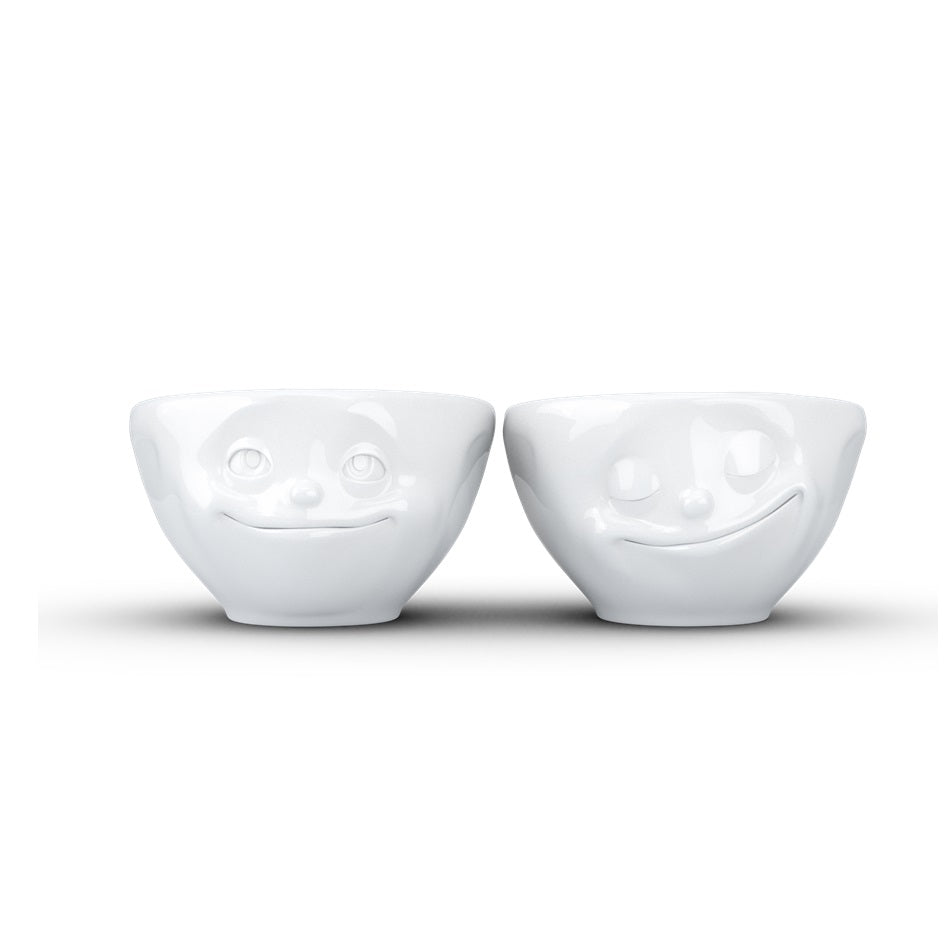 Tassen Happy Faces schaal set 2 Vertraumt & Glucklich gezicht van wit porselein. Perfect voor dipsauzen, marmelade en andere kleine... Lees meer
