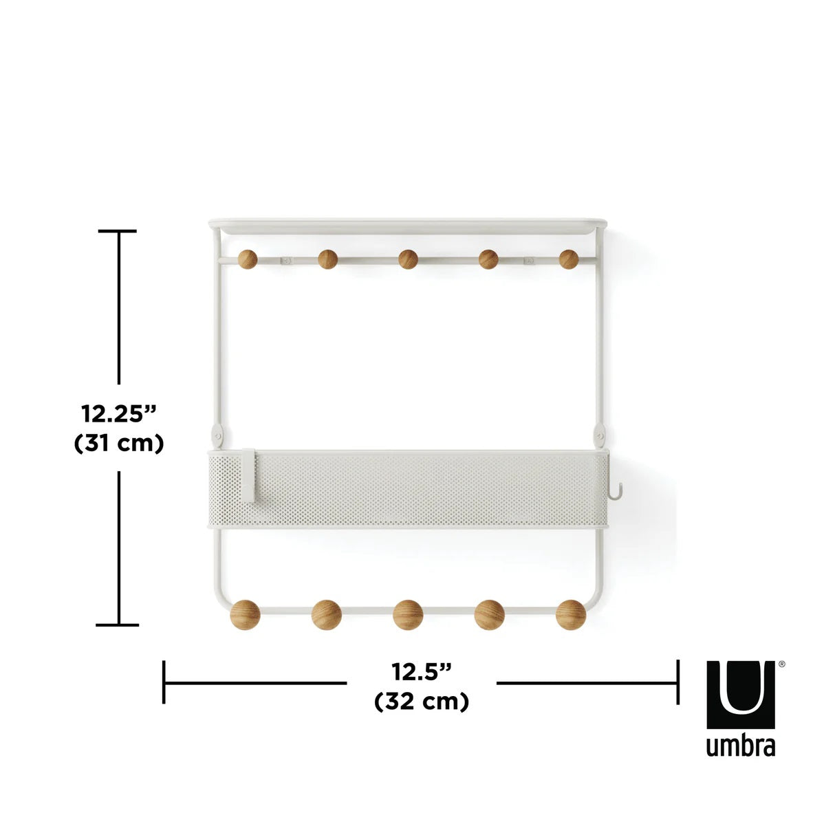 Umbra Estique plank / rek met haken wit